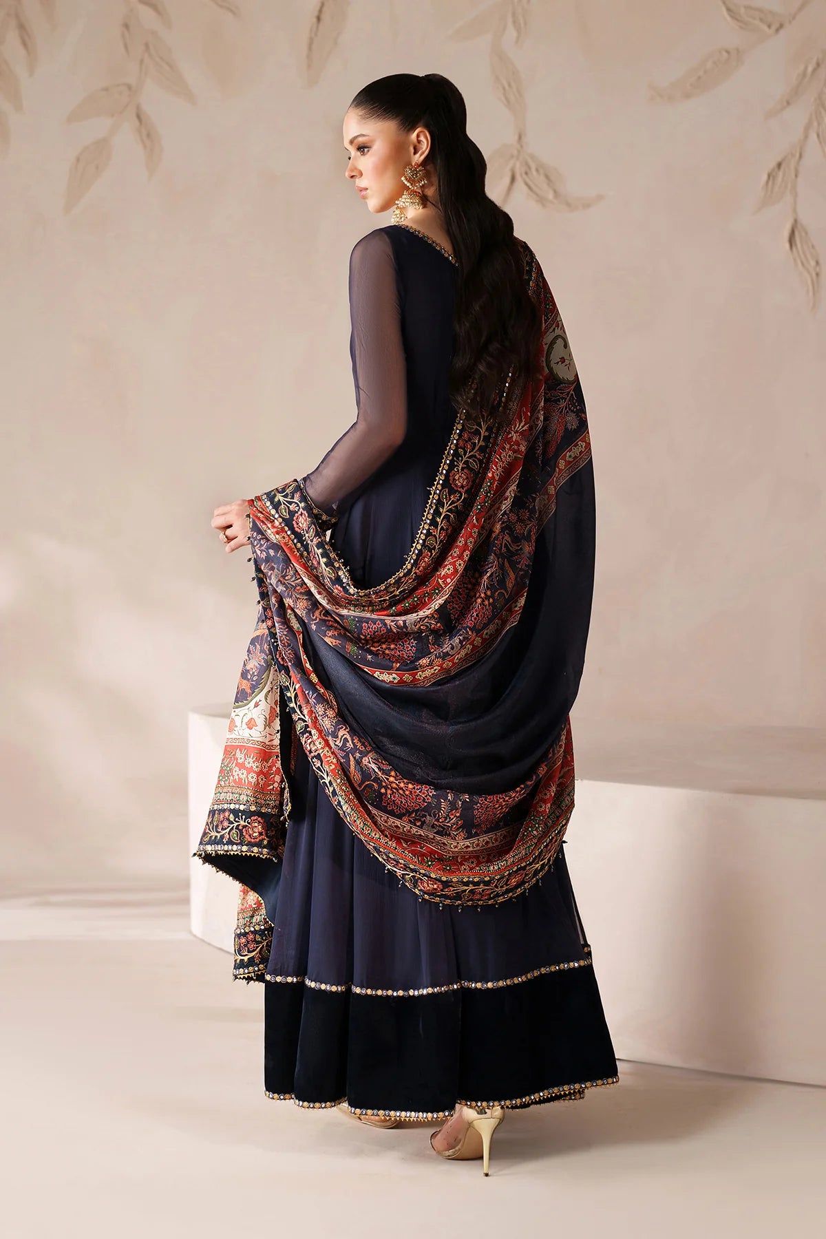 Frock fabric : embroidered chiffon neckline and sleeves with velvet border