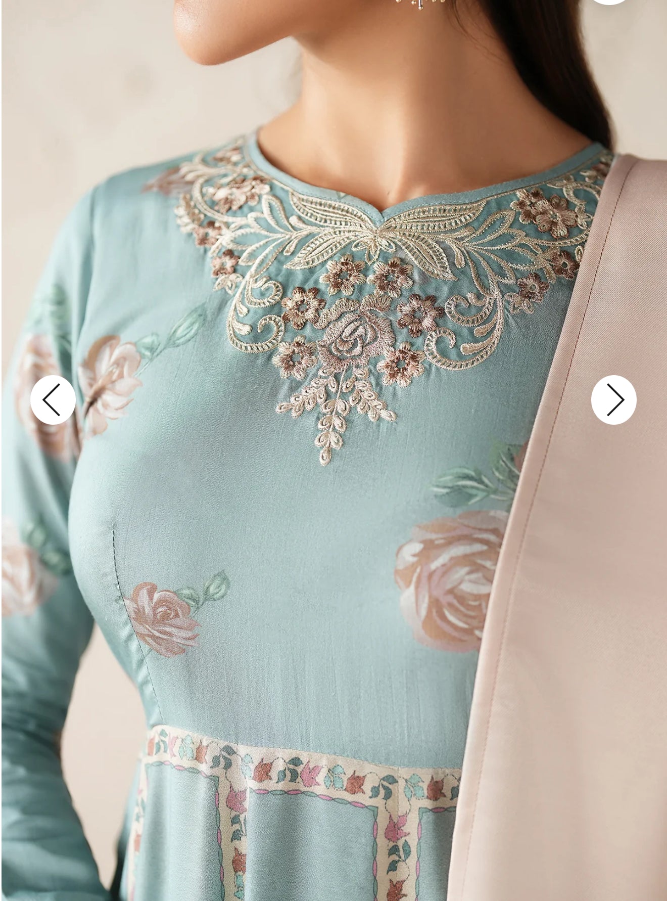 Frock fabric : digital printed viscose frock with embroidered neckline and sleeve border