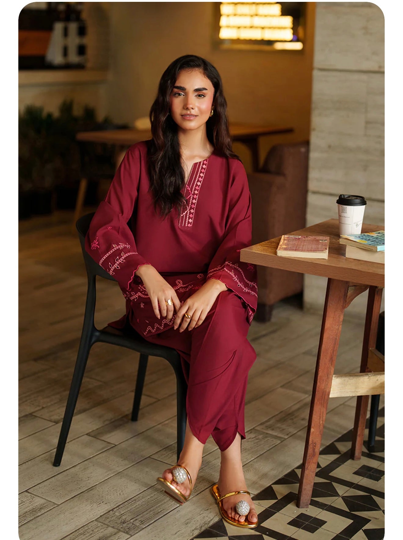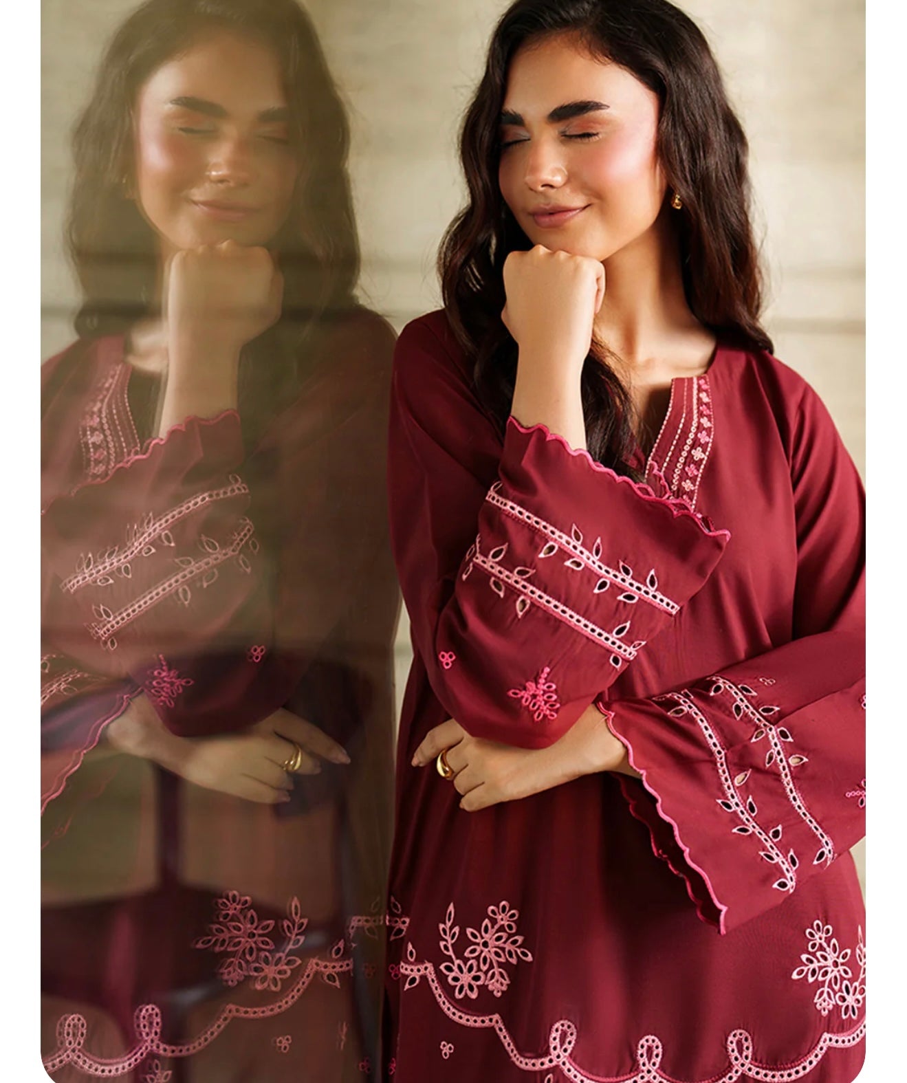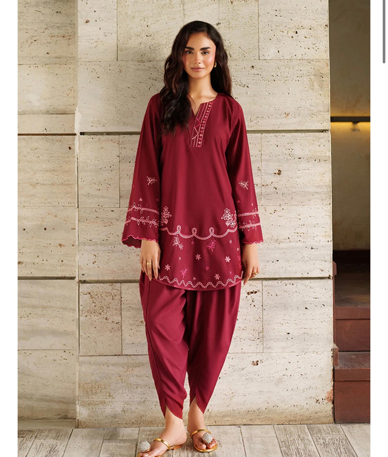 Blaze Berry, an embroidered matching coord set in a deep maroon, crafted to add a touch of bold sophistication to your everyday wardrobe.