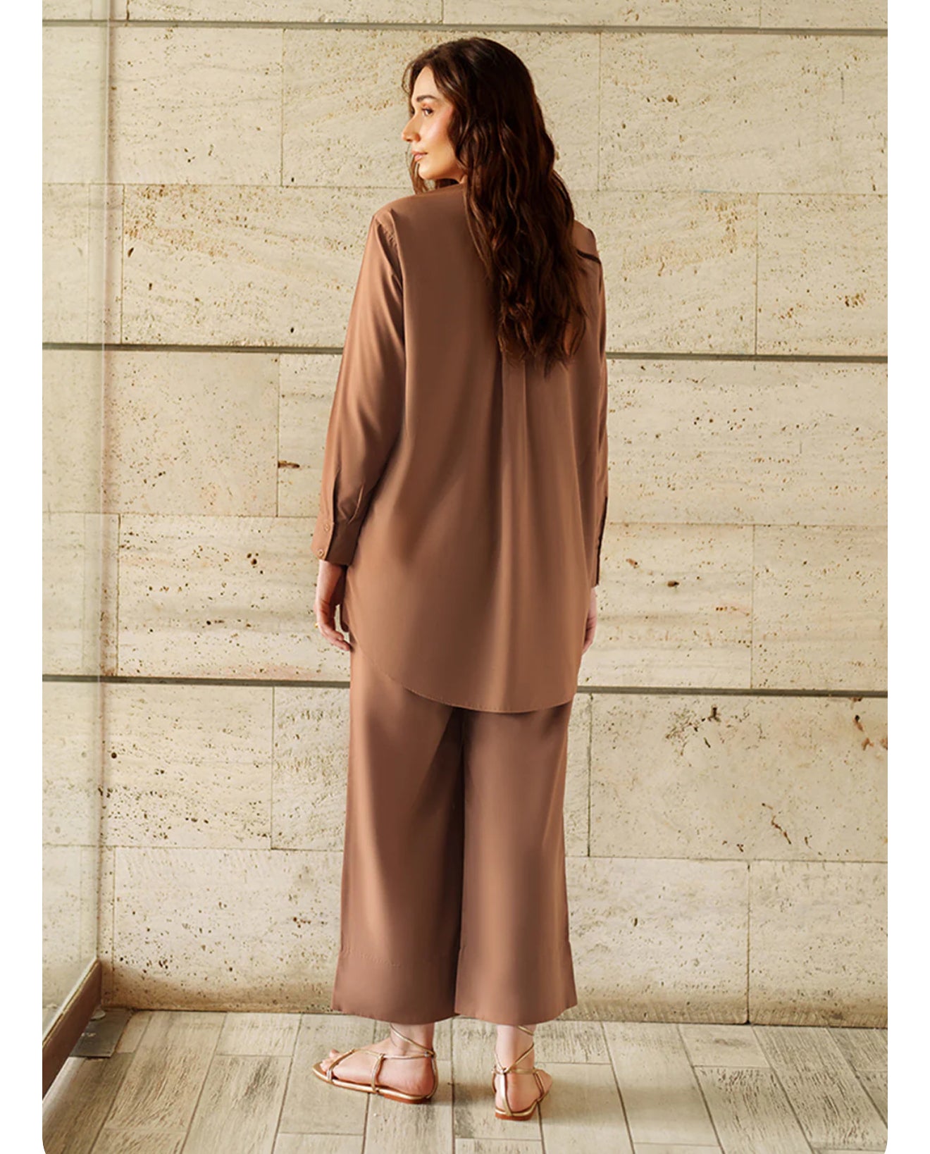 Paired with chic culottes and tailored from our premium in-house blended fabric, it ensures both comfort and sophistication.